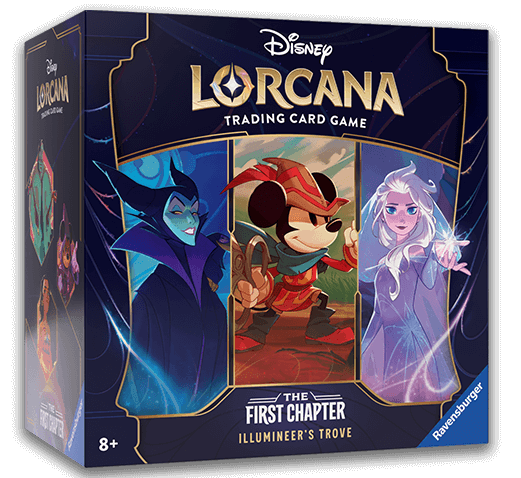 The ultimate treasure for both collectors and players, the Illumineer’s Trove includes a full-art storage box, two deck boxes, eight booster packs, a player’s guide, and more.